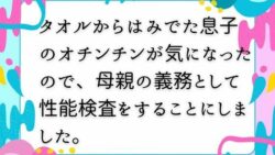 タオルからはみでた息子のオチンチンが気になったので、母親の義務として性能検査をすることにしました。